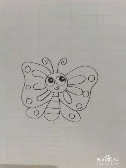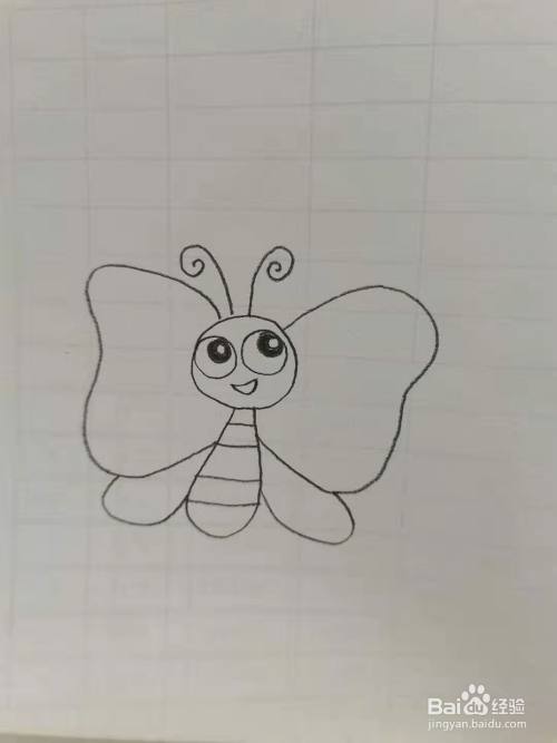 第二步,我们画小蝴蝶的眼睛嘴巴和触角。