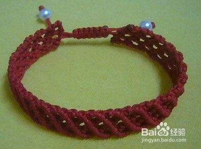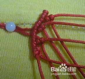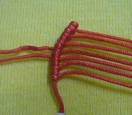 重复2、3步骤编至合适长度,留中间两根线,其余余线剪短烧粘,平结收尾