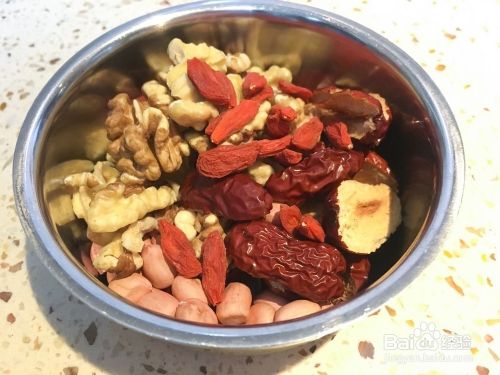 可以加入同样烤过的花生,去核的红枣,一把枸杞。