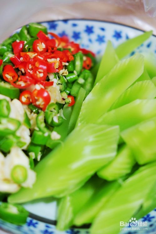 用滚刀把莴苣切成块。准备大蒜和胡椒。