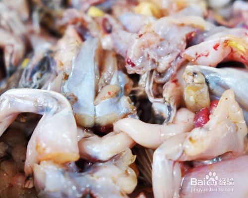 剁碎小块,加入生姜、料酒、盐、酱油,腌半个多小时。