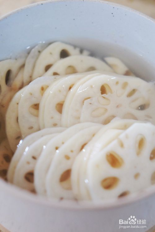 藕切片泡盐水,去淀粉更爽脆和防变黑。