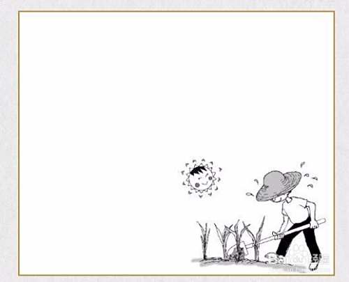 在四方形的右下角画上:农民在烈日下除草的图案