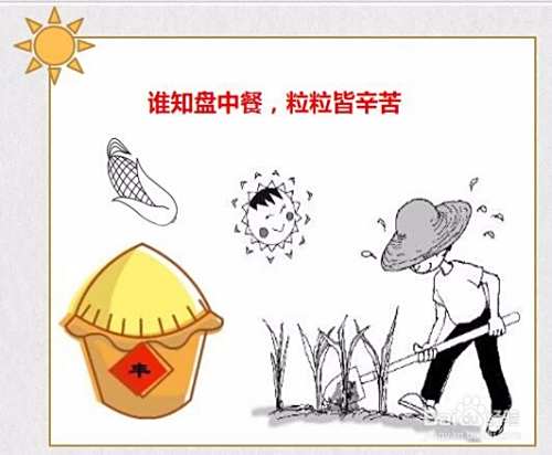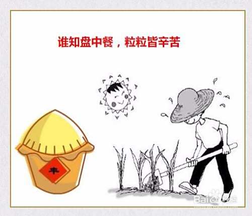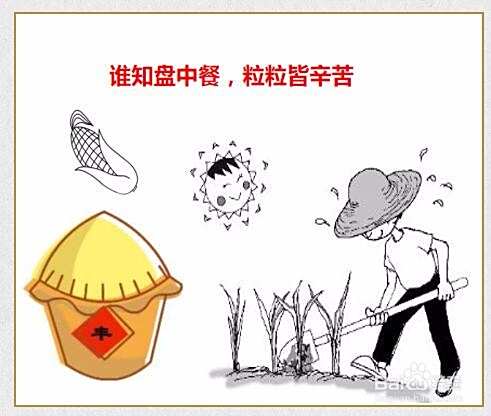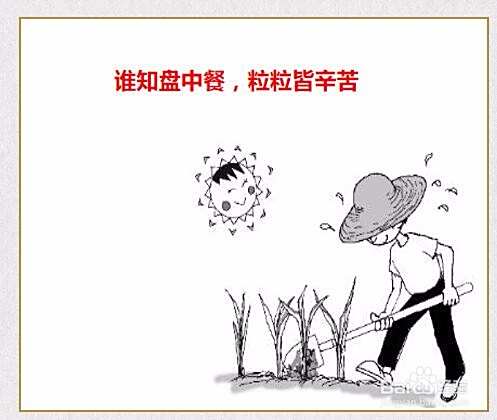 在四方形的上方,用彩色笔写上“谁知盘中餐,粒粒皆辛苦”