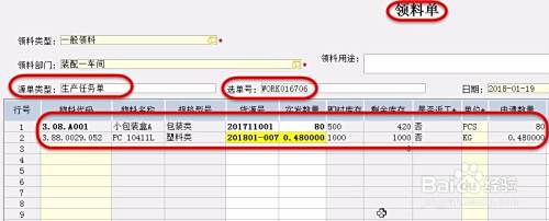 投料单中内容被带到生产领料单表体中,完善领料单必录项后保存并审核,完成从生产任务单到生产领料单的关联操作。
