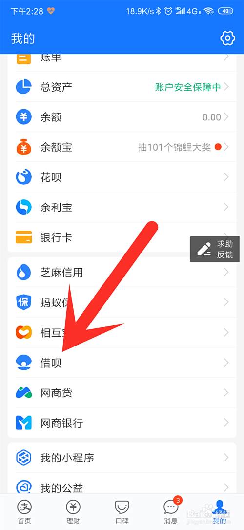 我们在我的界面,找到借呗,我们点击借呗进入。