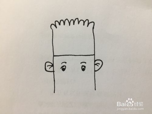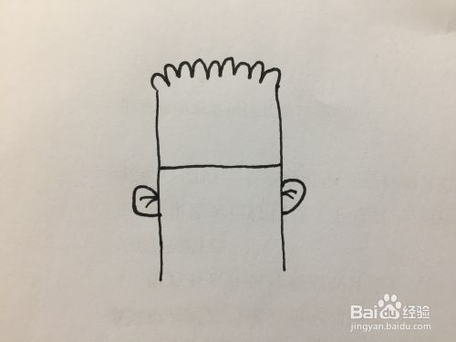接下来在中间横线的下方,竖线两侧,分别画一个半圆形,也就是耳朵,里边再画些线条。