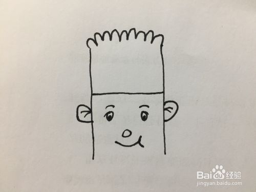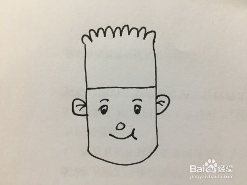 最后,将下边的两个竖线尾端连接起来,画一个圆弧形的线条即可,这样脸部就闭合了,整个图画也就完成了。
