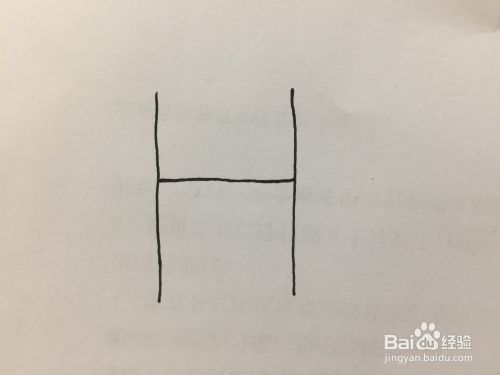 在纸上先画两竖一横的图形,其实看起来就是字母H的形状,具体如图所示: