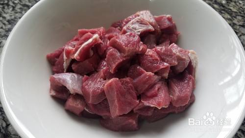 把牛肉切成小丁,切得越小越容易熟,也可以切成薄片,这个看自己喜欢呀。
