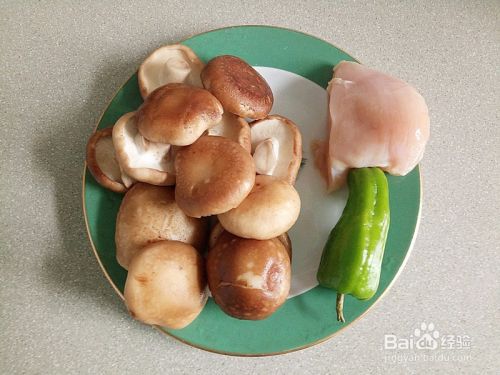 备齐所有食材:香菇、鸡胸肉、青椒。