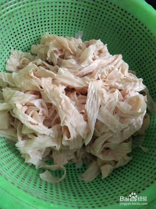 首先准备食材,豆皮青菜各一份,清水清洗干净,青菜切成条状备用。