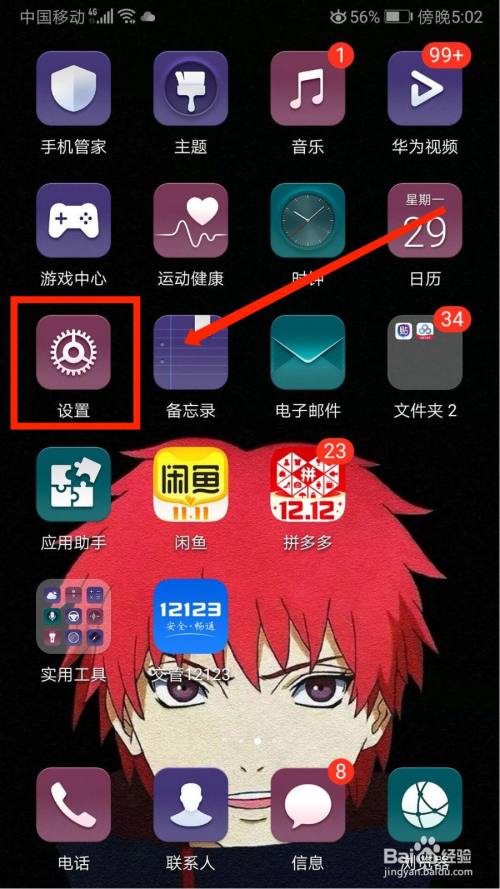 首先选择手机“设置”选项。