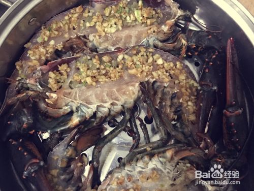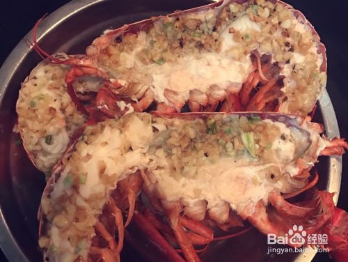 大蒜撒上后的龙虾。如果你喜欢吃粉丝,你可以撒一些粉丝