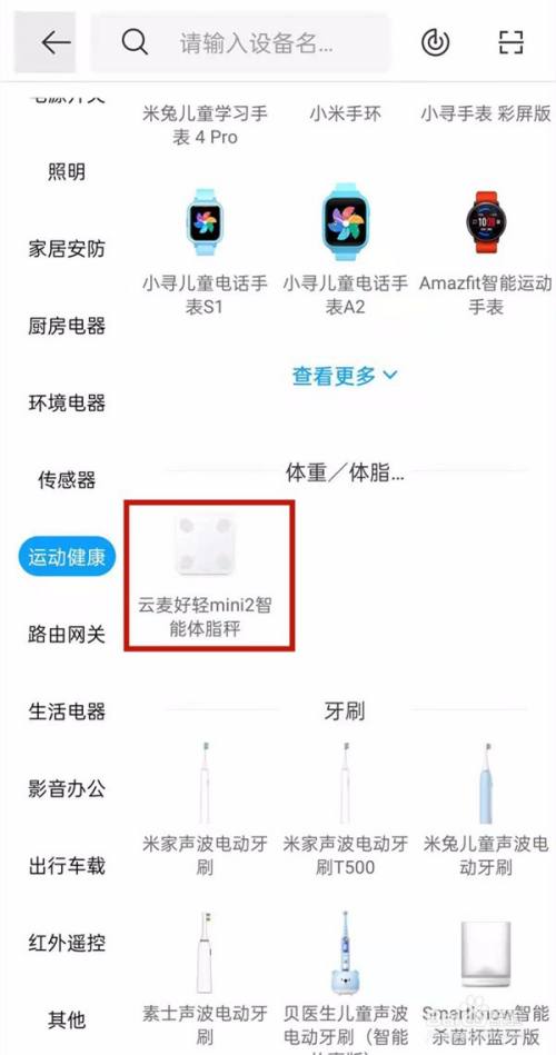 2、在运动健康里找到体脂秤并点击。