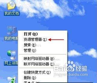 鼠标右击桌面上“我的电脑”、“我的文档”、“网上邻居”、“回收站”等图标,在打开的菜单中选择“资源管理器”命令