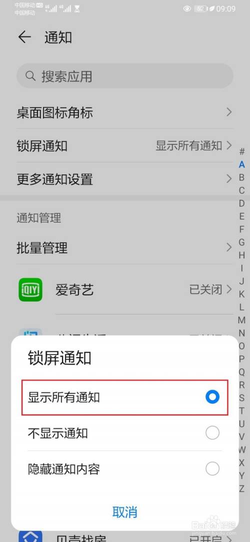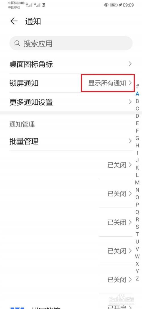 进入通知设置页面,打开【锁屏通知】设置选项,如下图所示。