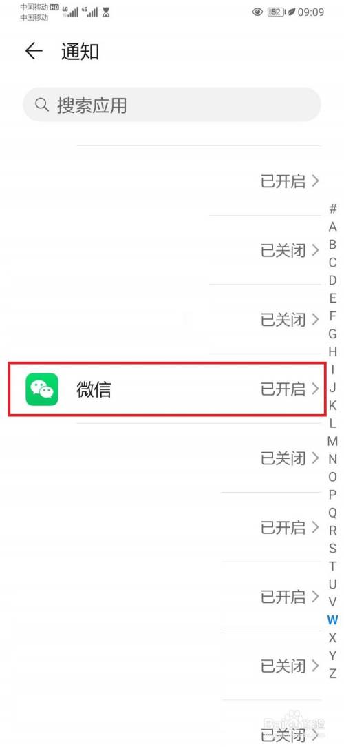 在通知管理应用列表中,找到并打开【微信】,如下图所示。