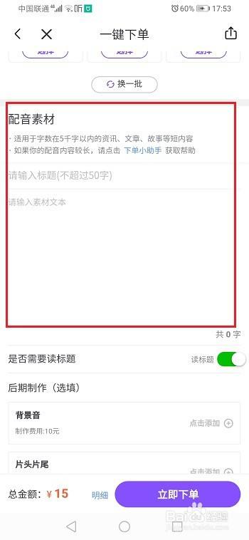 第二步进去配音服务之后,点击一键下单,如下图所示: