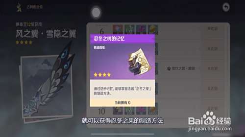 第一把在覆雪之路上,传送到忍冬之树那,当忍冬之树的供奉等级到达10级后,就可以获得忍冬之果的制造方法。