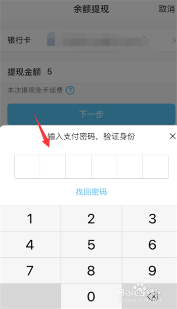 点击下一步并输入密码即可完成提现。