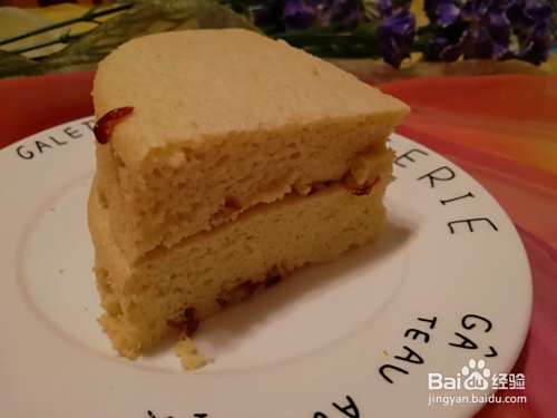 拌好的发糕糊比较细腻光滑,加入适量的蔓越莓干(可以提前切碎)倒入模具中,用刮刀刮平,垂直震几下,震出气泡。(模具刷上少许食用油)