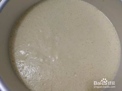 小米泡半天,加入玉米油、蛋黄、糖用搅拌机搅打成细腻的米糊,放适量酵母,用硅胶刀搅拌均匀,不要转圈搅拌,以免起筋。