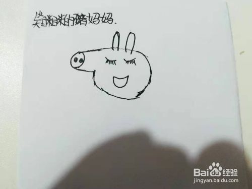 然后我们来画猪妈妈的眼睛,嘴巴部分,脸部轮廓。如下图