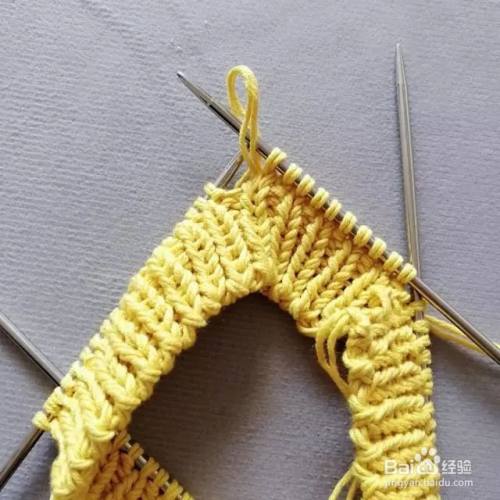 起针后,把针目均匀地分到3根针上面,然后圈织单螺纹12行