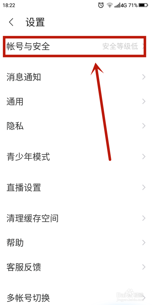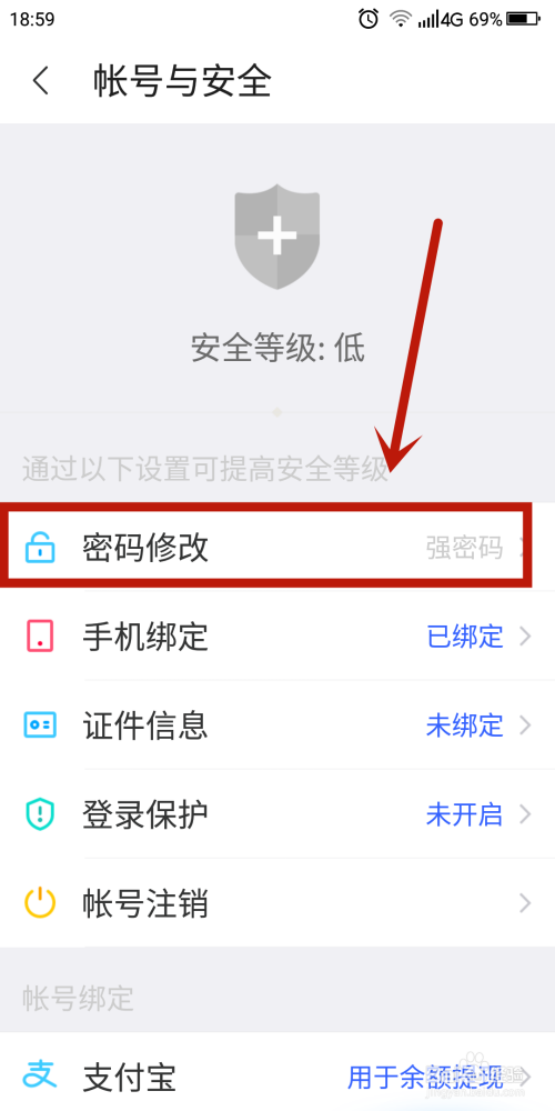 在打开的【帐号与安全】页面,选择【密码修改】选项点击。