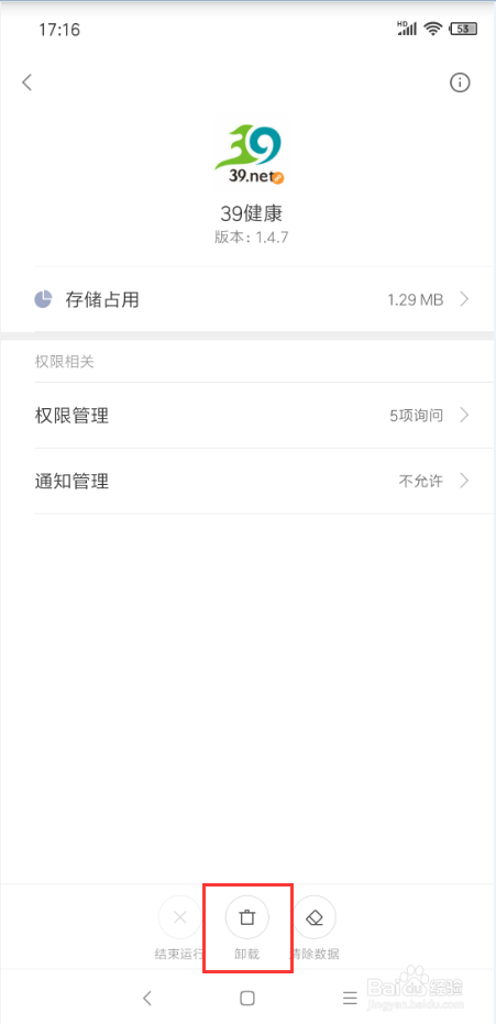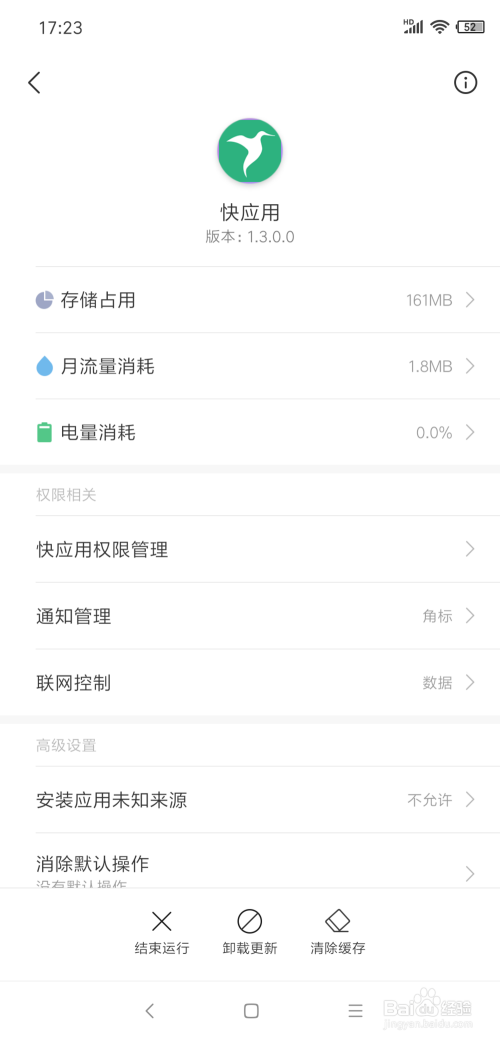 操作完成后回到个快应用,原来显示添加的地方会变成卸载,点击卸载即可卸载,同样方可以卸载其他快应用