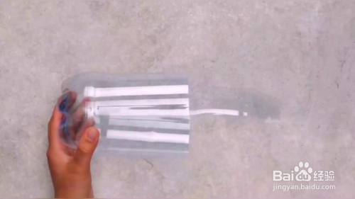用刻刀按着标好的高度,切割需要的地方,把抽纸放进水瓶内。