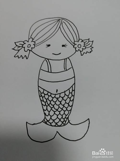 然后我们画出美人鱼小女孩的美人鱼的尾巴,这里我们画出鳞片就好,如下图: