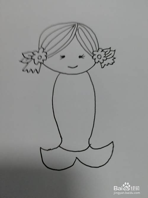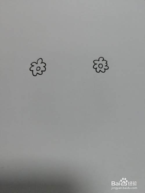 首先我们在A4纸上画出两朵小花,用这个表示美人鱼小女孩辫子上的小花,如下图: