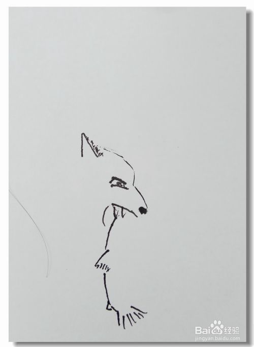 在白纸上画出狼的头部轮廓,并画出狼的眼睛,鼻子,嘴巴,再画出狼的两个耳朵,狼的耳朵并不大,尖尖的,特别灵敏。
