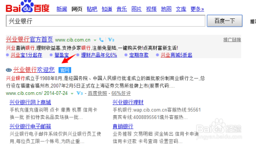 百度一下【兴业银行】点击如下图所示的【兴业银行欢迎您官网】的链接进入。
