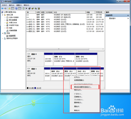 在磁盘的分区栏中找到自己需要修改磁盘卷标鼠标右键选择更改驱动器和路径,如图所示