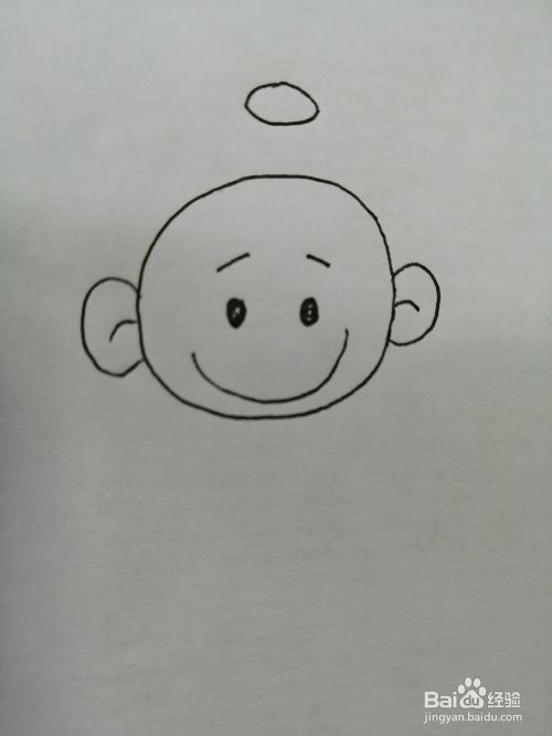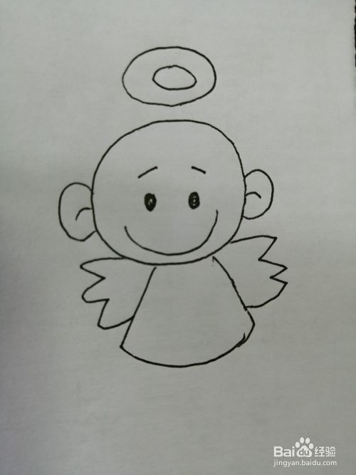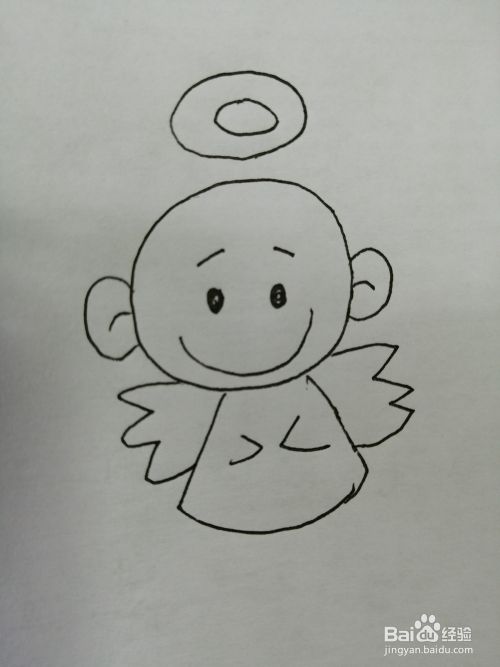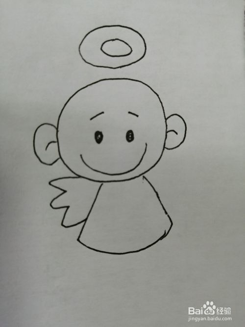 第五步,接着在幼儿天使的头部上面画出一个光环。