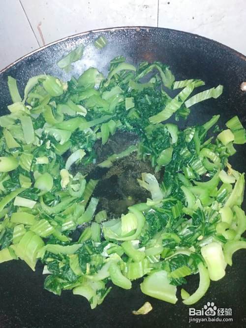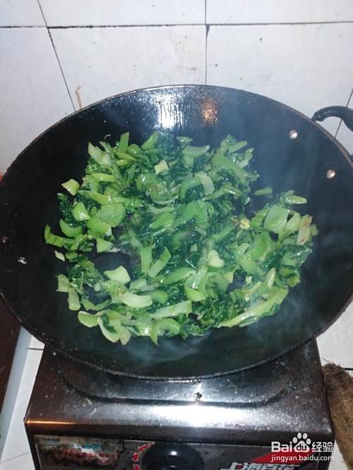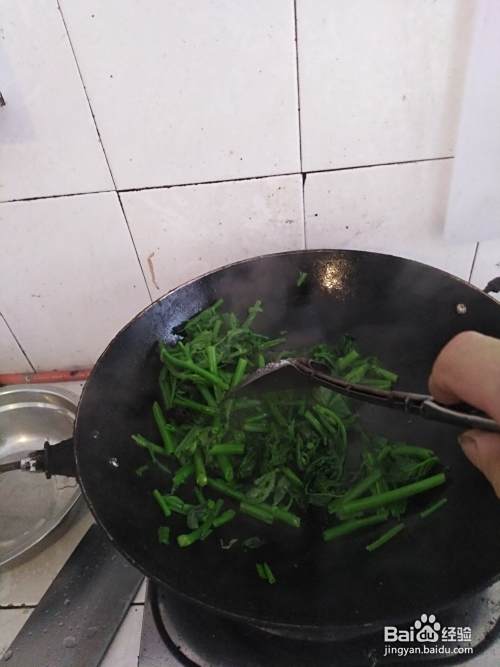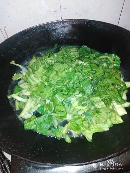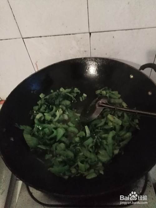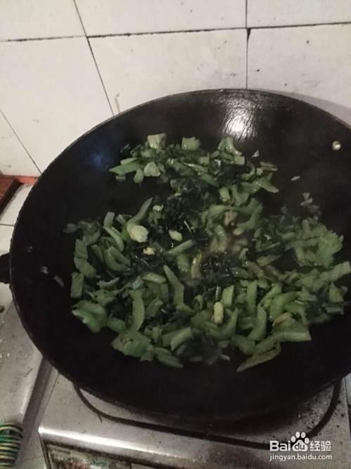 锅里放足够的油烧热倒入过水的芥菜加盐大火爆炒干炒香就可以吃了