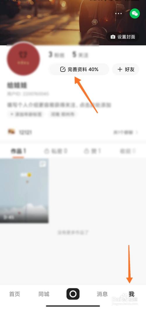 登录快手,在我页面点击完善资料。