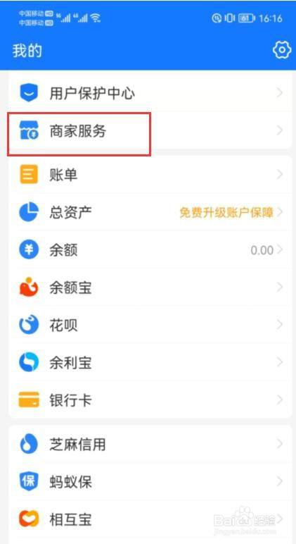 进入支付宝,点击商家服务。