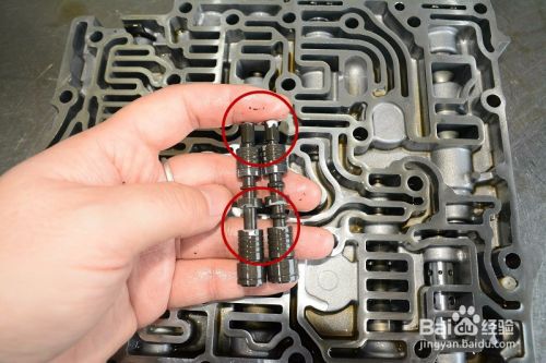 磨损的阀芯是这样的。阀芯磨损的原因是变速箱内部变速箱油中有铁屑、杂质造成。如果变速箱油中有脏东西,就会对做快速活塞式运动的阀芯造成磨损。因为阀芯和阀道之间的空间很小,充满变速箱油,变速箱油中的铁屑,杂质会对阀道和阀芯造成磨损。这样的情况要更改进的阀体。