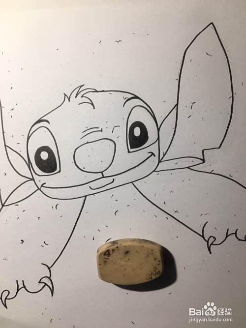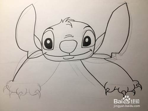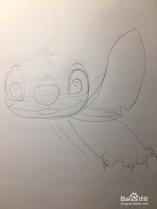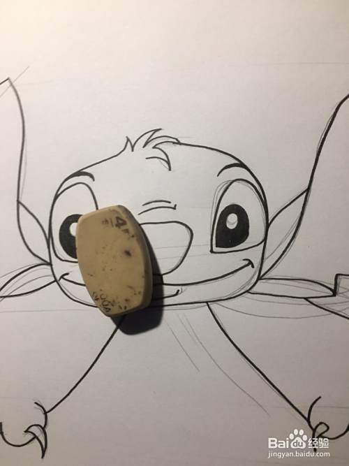 画耳朵、爪子等部位,卡通兔子头画初稿完成。