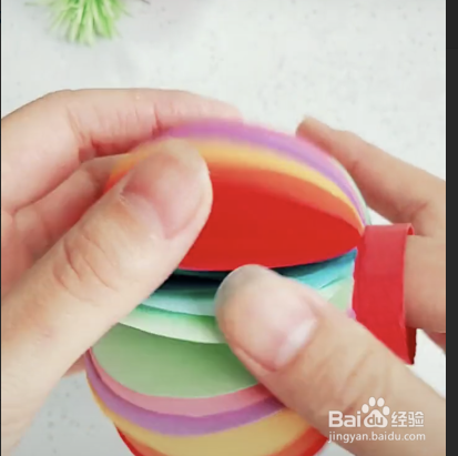 用剪刀减去多余部分,依次类推,做好各种颜色的半圆