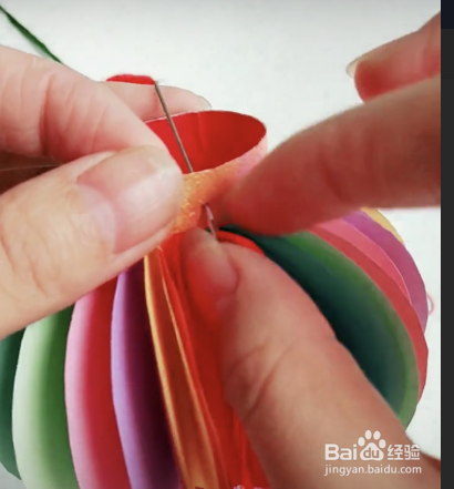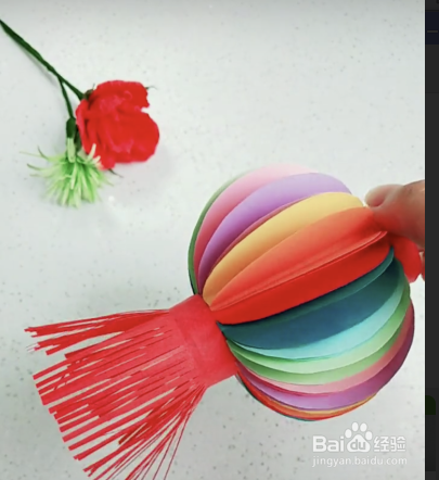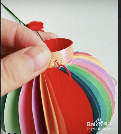 把站好额纸片反方向围成一个圆并粘合好,灯笼的重要部分就完成了