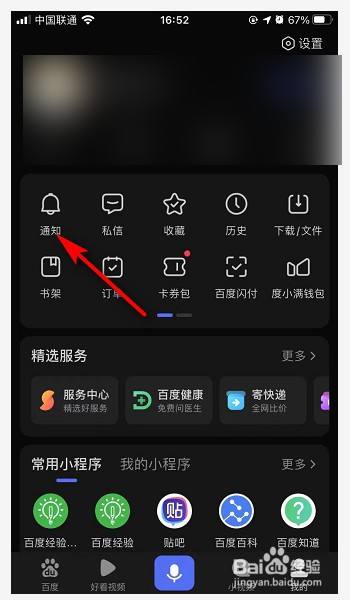 然后在我的页面点击下方的通知。