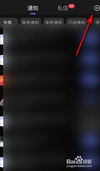 接着进入通知页面点击右上的设置按钮。