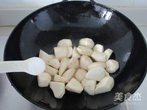 7盖上大火烧开后转小火烧制芋艿粉糯