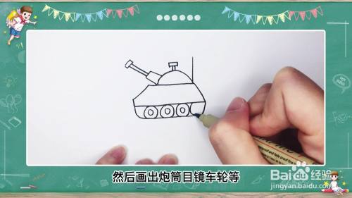 最后用彩笔涂抹颜色,一个简单地坦克就画好了。