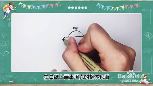 首先用笔在白纸上画出坦克的轮廓